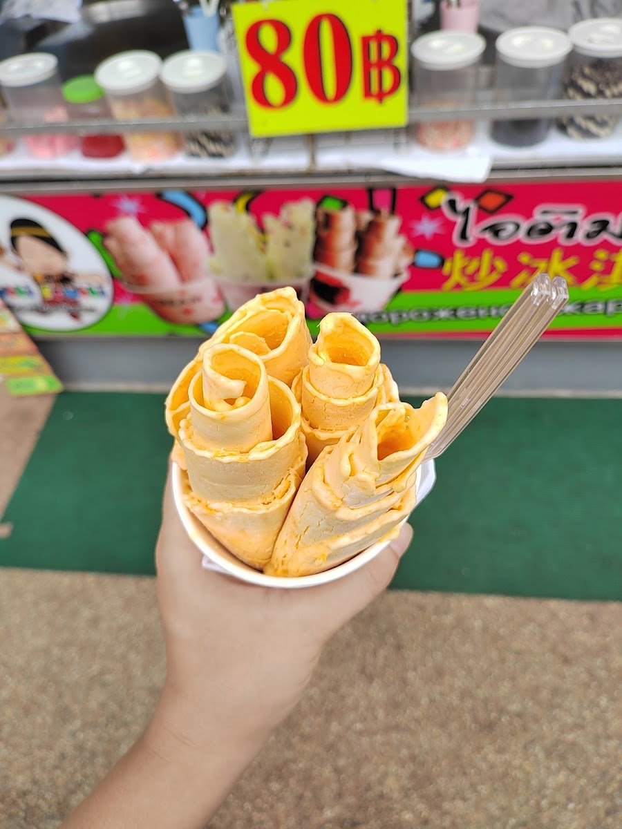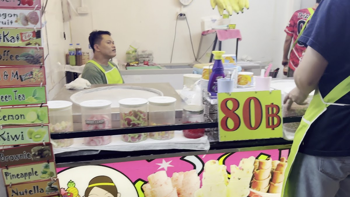 With each scoop priced at an incredibly affordable 80 THB, you’re not only indulging in a delicious treat but also enjoying exceptional value. Customers rave about options like Mango Passion, the perfect blend of tropical sweetness that will whisk you straight to a beach paradise. Others find joy in satisfying their cravings with flavors such as Nutella, Chocolate, Mint, Strawberry, and of course, the popular Thai ‘stir-fried’ ice cream. The real magic happens as you build your own creation, with free unlimited toppings available to turn your ice cream into a personalized masterpiece.