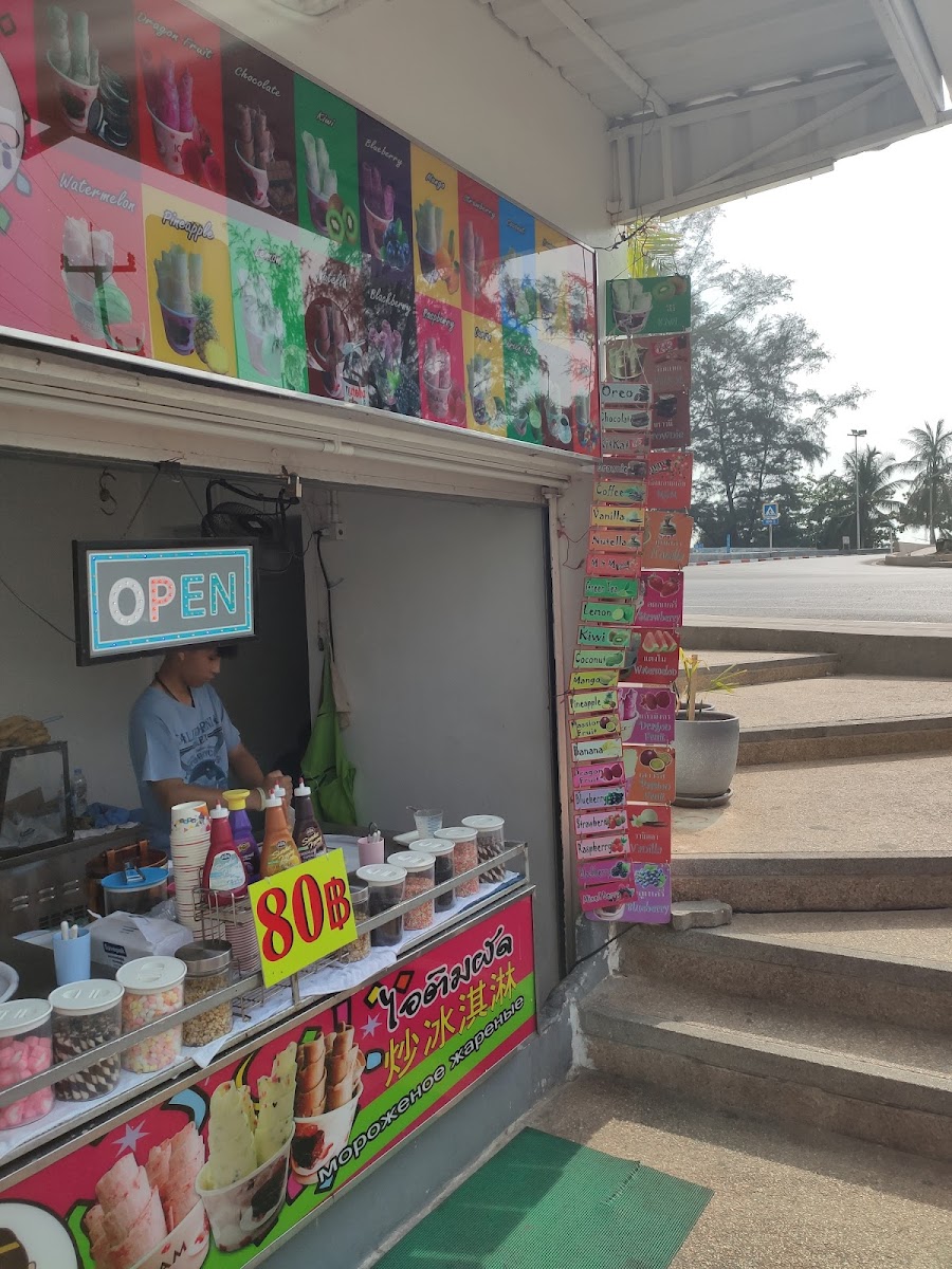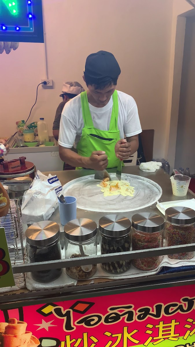 Welcome to Fried/Rolled Ice Cream, a unique gem located at 240 ถนนกะรน, Karon, Mueang Phuket District, Phuket 83100, Thailand. This delightful café transforms the way you think about ice cream with its innovative preparation method, where each order is crafted right before your eyes. As you watch skilled hands mix fresh milk and real fruits on an icy cold pan, you’ll be captivated not just by the process, but by the mouthwatering aromas filling the air.